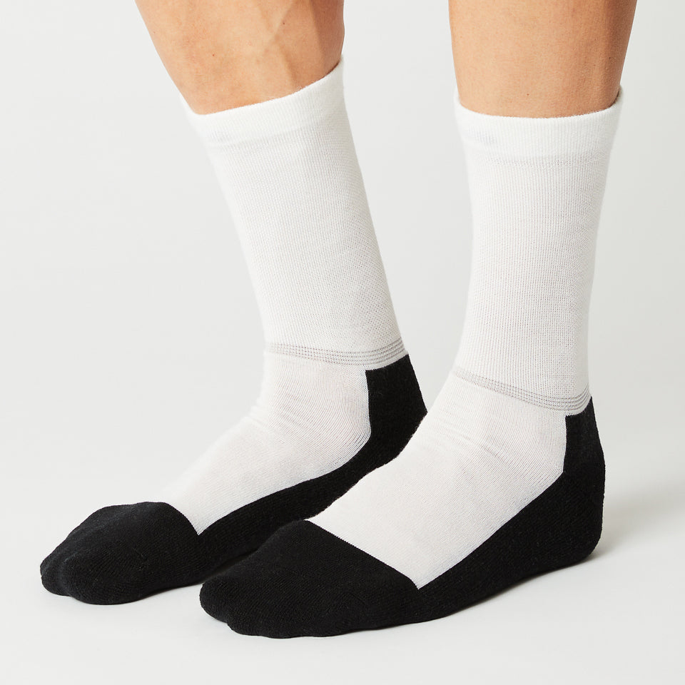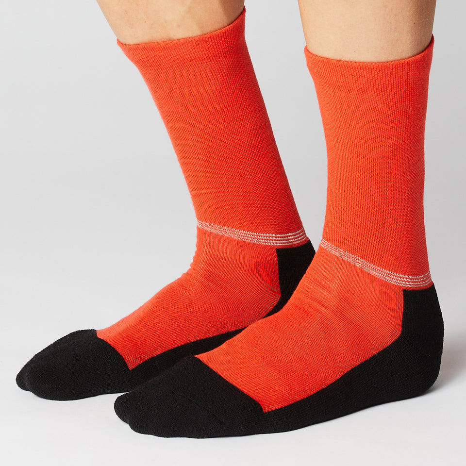 Merino sokken zijn ideaal voor de late herfst, vroege winter en vroege lente. Een reflecterende veiligheidsstrip, speciaal ontworpen voor het gebied tussen je beenwarmers en je schoen, verhoogt je veiligheid in het donker en tijdens de maanden waarin het snel donker wordt buiten. Een geïntegreerde neus beschermt je tenen tot aan de hiel in de vorm van een extra versteviging van het materiaal.